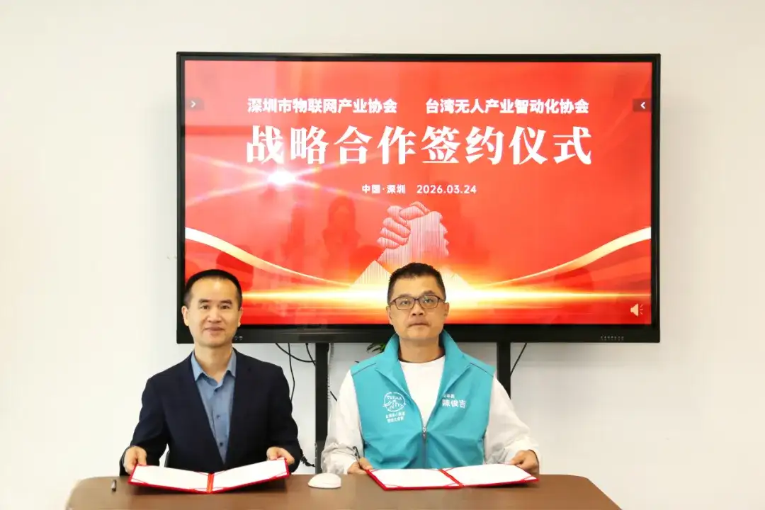 为凝聚合作共识,打通技术链、产业链与市场端的协同通道,活动举行了战略合作签约仪式。深圳市物联网产业协会执行会长杨伟奇与台湾无人产业智动化协会理事长陈俊吉作为协会代表签订战略合作协议。双方将以此次签约为起点,建立长期稳定的交流合作机制,在产业信息共享、企业互访交流、项目合作对接、技术成果转化等方面开展深度合作,推动深台无人产业与物联网领域的协同发展。