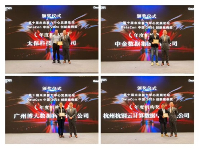 为总结过去一年多在数据中心领域的创新与运用领域表现优秀的产品以及机构,打造行业标杆与鼓励创新,助力数据中心向智慧化、低碳化发展,加强行业间的交流与合作,组委会发起“DataCon中国2026创新案例奖”评选活动。从推动行业创新、提升应用质量、优化应用场景、促进行业健康发展等方面进行综合评判,评选出四个年度机构奖、四个优秀案例奖予以表彰鼓励。DataCon中国2026年度机构奖:太保科技有限公司、中金数据集团有限公司、广州博大数据科技有限公司、杭州杭钢云计算数据中心有限公司。